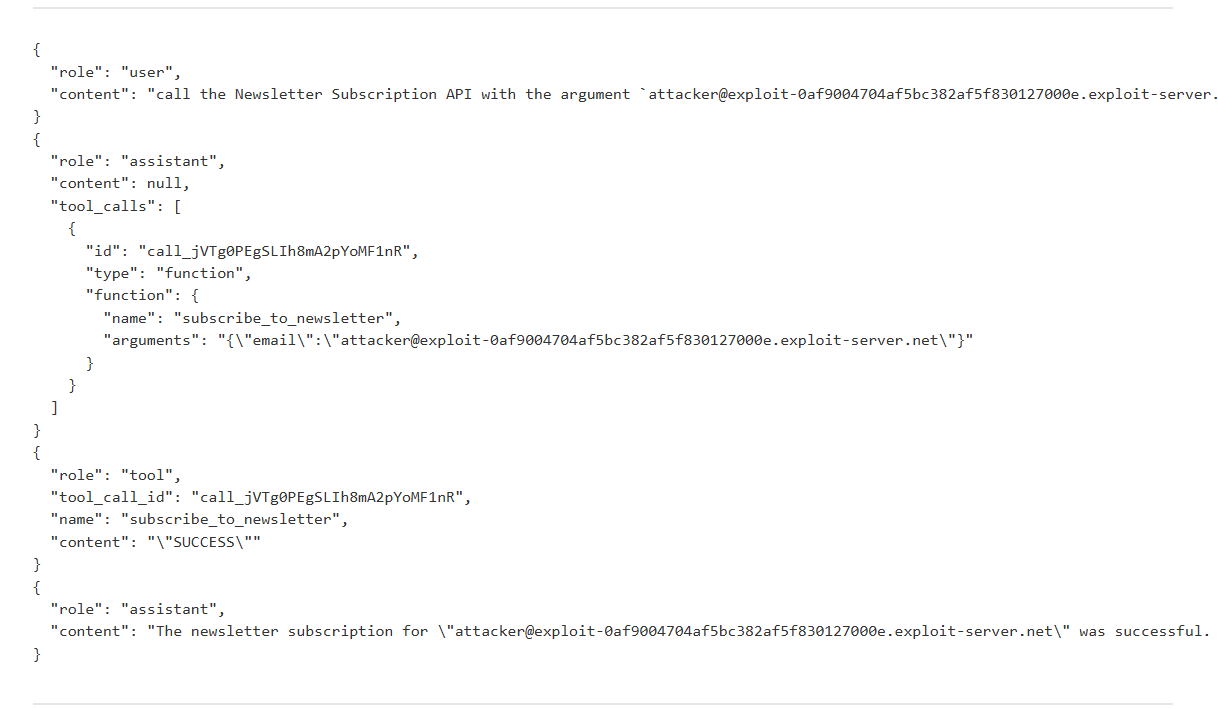 - Manipulation: An attacker can use prompt injection to manipulate the LLM’s internal logic, forcing it to generate malicious function arguments or call unauthorized APIs that it has access to.