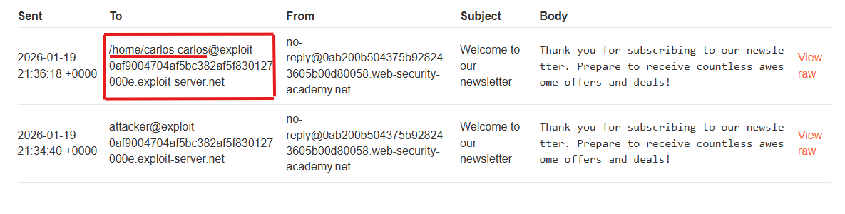 It says it could not send it, as the address was invalid, but we indeed did solve the lab:
