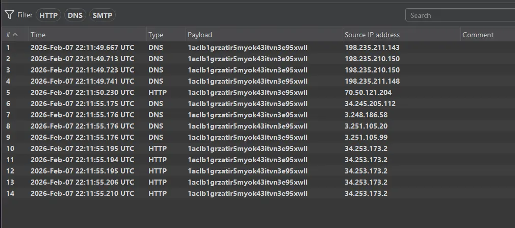 - In Burp, go to the Collaborator tab → “Poll now”. portswigger
