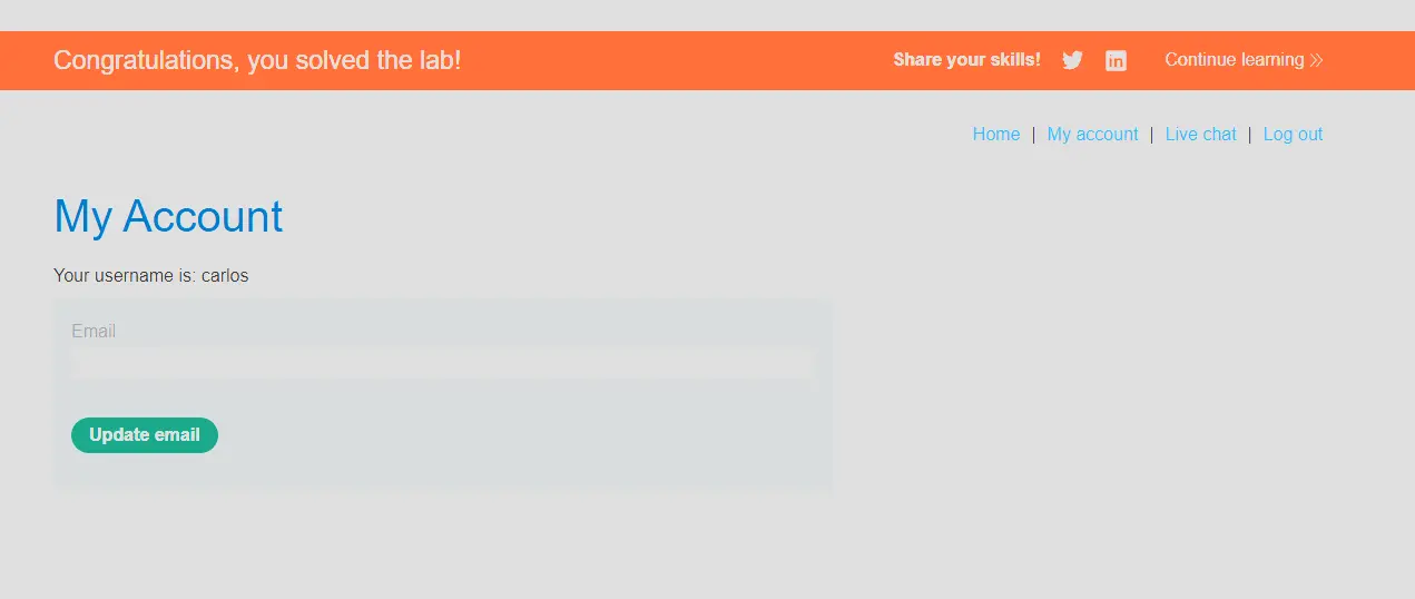 The lab is solved when the victim’s chat history has been exfiltrated via Collaborator.