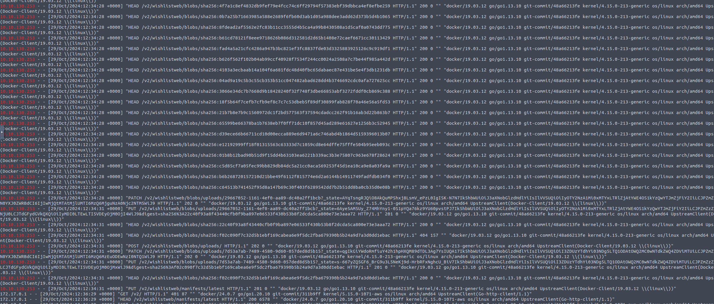 - Connections came from 10.10.130.253, which is unexpected since we only upload images from 172.17.0.1.