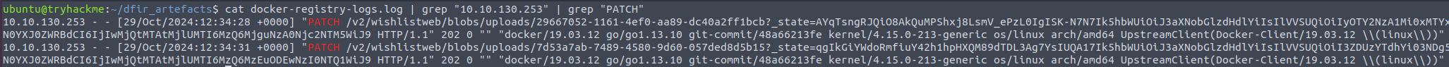 cat docker-registry-logs.log | grep "10.10.130.253" | grep "PATCH"