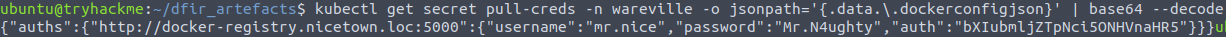 kubectl get secret pull-creds -n wareville -o jsonpath='{.data.\.dockerconfigjson}' | base64 --decode