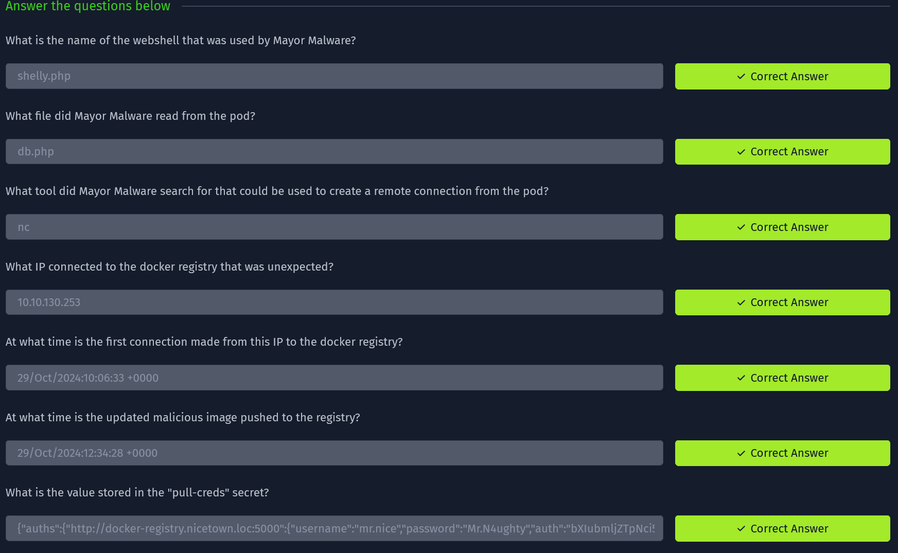 - The client was authenticated, which allowed the image to be pulled. This means that whoever made the request had access to credentials.