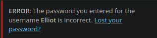 If we go to the wp-login form, and attempt to login with Elliot, we get an even more verbose error message. It states that the password for the username Elliot is incorrect. This is WAY too much information to give to a potential attacker.