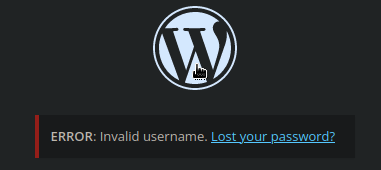 Also, when attempting to login to the WordPress portal, we can see that the errors are quite detailed in that it is telling us the username is invalid. If it just said Incorrect login details, then we wouldn’t know whether to brute force the username or password field. In this case, we can attempt to brute force the username first, then the password afterwards.