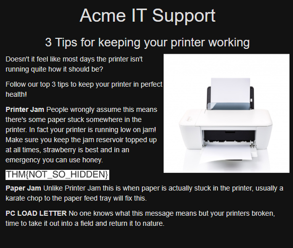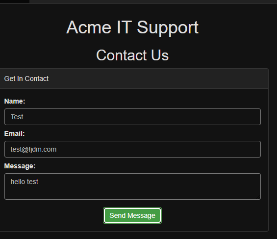 | Home Page | / | This page contains a summary of what Acme IT Support does with a company photo of their staff. |