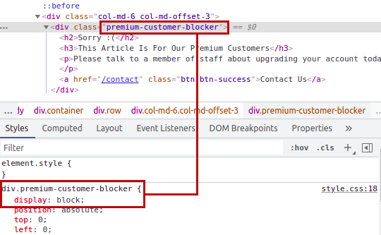 In this picture, for example, we can edit the css of a paywall from block to none and view what is behind it.